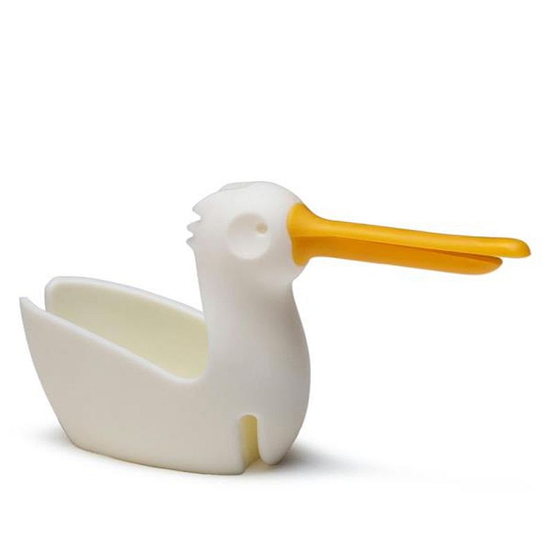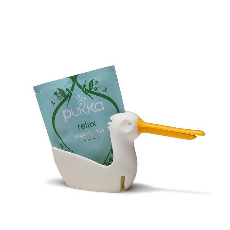 Mach deine Teepause zu einem echten Highlight – mit Pelicup, dem kleinen Pelikan-Teebeutelhalter von Peleg Design. Dieser charmante Kerl schwingt sich an den Rand deiner Tasse oder deines Glases, hält den Teebeutel mit seinem Schnabel beim Ziehen und nimmt ihn danach auf seinem „Rücken“ auf. So tropft nichts auf den Tisch.